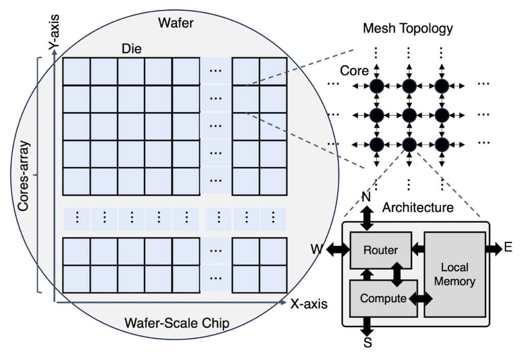 - Massive Parallelism (P): Leveraging the vast number of cores on a wafer requires sophisticated strategies for partitioning and replicating computation. Unlike traditional systems with tens or hundreds of GPUs, wafer-scale architectures may involve keeping millions of cores simultaneously active. This scale further demands careful scheduling to ensure that communication and computation are effectively overlapped across all cores.